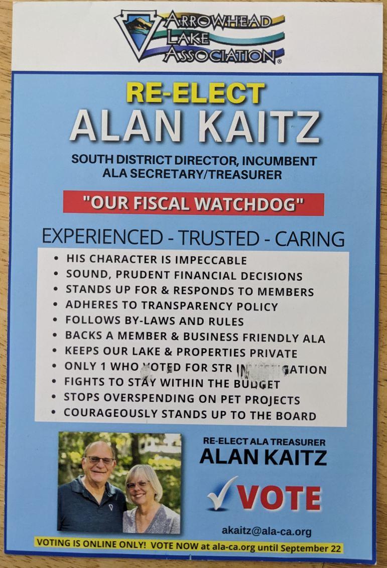 So what did Kaitz do? Well, he went along with the decision to allow STR renters on docks (so much for keeping our lake private...), and he has done NOTHING to increase transparency, even though he emphasized it 3 times in his statements. On the contrary, he inserted himself into the CLOSED DOOR TO MEMBERS Litigation Committee, spearheaded the push for more member fee increases, and has not once demonstrated his support for member polls or surveys regarding important issues. So much for transparency...