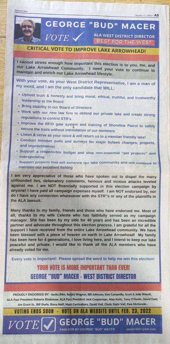 I want to KEEP OUR LAKE PRIVATE!, Enhance Transparency, and Honesty, Limit Fee Increases, and most importantly, to restore a MEMBER-FRIENDLY ALA. We believe in Transparency. We believe in soliciting Member input on important matters of change."